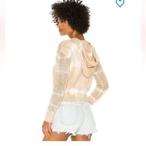 super down tallie hooded sweater NWT beige and white size xs