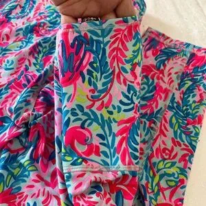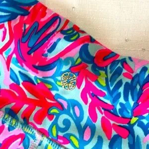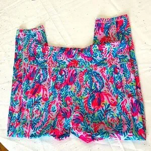 Lilly Pulitzer RARE print, 7/8 capri pink, blue and a splash of bright green print! the crotch has a tiny bit of wear. pocket for your phone or credit card, rare print, you’ll get so many compliments on these!