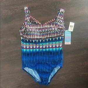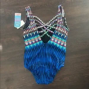 Vibrant one-piece swimsuit. Features a multicolor pattern. Perfect for the beach or pool. Bust support, Tummy Control, Hip Minimizer. NWT size 10