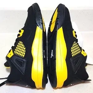 NIKE Air Jordan 4 Retro Thunder Black Yellow Sneakers Boys Size 13C NEW
