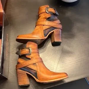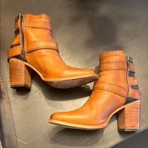 Freebird Patsy size 8 Brown Ankle Boots with Chunky Heel and Decorative Straps