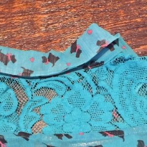 Top worn once. Black leggings never worn. So cute. Lace inset on back of top. Little Scottie dogs and pink hearts all over. Size Medium (7-8).