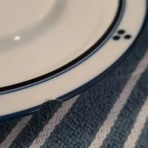 All pieces are in excellent condition with possibly a very small random spot or 2, with the exception of the small chip on the rim of one of the plates which I've shown in a separate photo and a tiny chip on the rim of one mug.