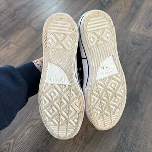 Classic and versatile Converse low-top platform sneakers in black leather. Featuring a lace-up closure for a secure fit, a chunky platform sole for added height, and the signature Converse branding. Durable and stylish, perfect for casual wear, street style, or everyday outfits.