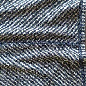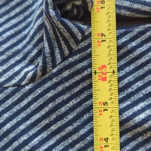 Stay cozy and stylish with this striped navy and gray cowl neck knit top. Perfect for any casual outing whether it's work from home, business casual day in the office, or weekend outfit for a sports game or errands. Easy to pair with denim or leggings. From a pet and smoke free home.