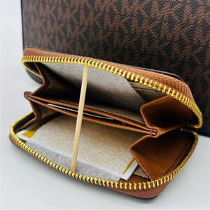 Michael Kors Large EW Crossbody Bag & Jet Set Travel ZA Card Case Wallet Brown