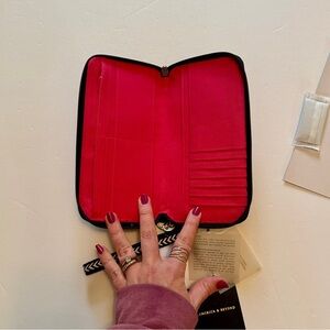America & Beyond NWT embellished beaded wallet with wristlet - black butterfly
