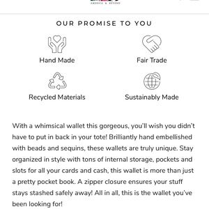 With a whimsical wallet this gorgeous, you’ll wish you didn’t have to put in back in your tote! Brilliantly hand embellished with beads and sequins, these wallets are truly unique. Stay organized in style with tons of internal storage, pockets and slots for all your cards and cash, this wallet is more than just a pretty pocket book. A zipper closure ensures your stuff stays stashed safely away! All in all, this is the wallet you’ve been looking for!