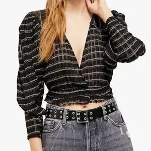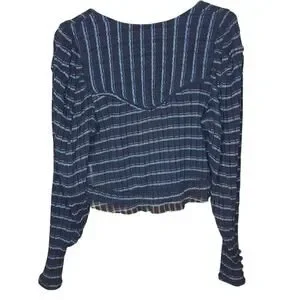 Free People Girlfriend combo top striped seer sucker puff sleeve v neck blouse