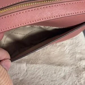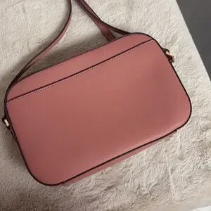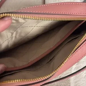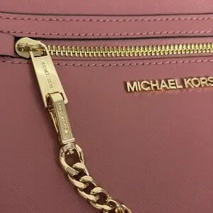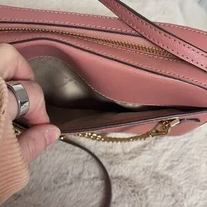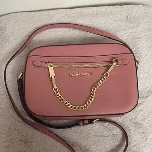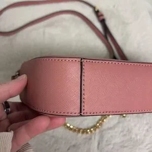 Very gently used Jet Set Large Saffiano Leather Crossbody Bag I maybe used a few times. No significant signs of wear and I tried to show any minor imperfections in the photos. Dimensions are approx 9.5 x 6.5 x 2 inches. Handle drop is between 20 - 24 inches when adjusted. Very pretty pink color. Front chain is removable.