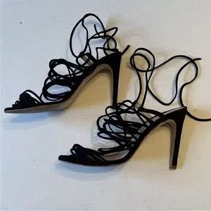 Step out in style with these elegant black strappy heels. Perfect for any occasion, they offer both comfort and sophistication.
