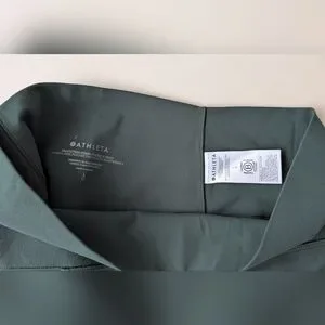 Soft stretch, with Athleta's signature compression waistband. This color is from Fall 21. It's a deep forest green color.