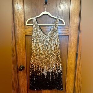 Sequen Dress, Black/Gold, Size Large, Party, Cocktail, Studio 54, New Year