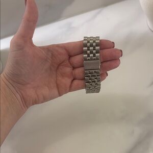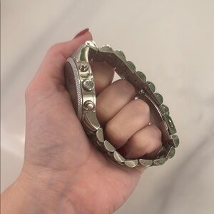 Mens Michael Kors watch. Features a chronograph design & silver metal band.