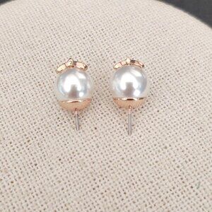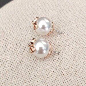 Faux pearl stud earrings with gold bows