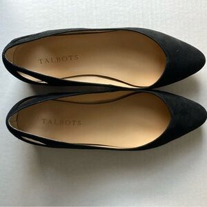 Talbots black suede 1/2” block heel size 6M made in brazil genuine leather upper