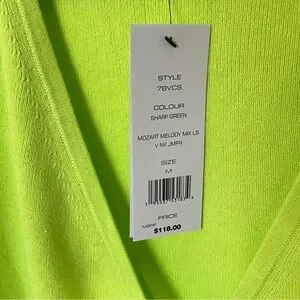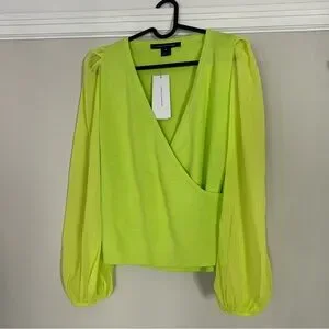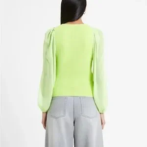 Brand new bright lime green long sleeve women's knit blouse jumper sweater size medium. Puffed sheer sleeves and a cotton sweater material to keep you warm as you transition into your spring wardrobe! Body 100% cotton, sleeves 100% polyester.