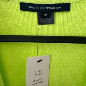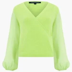 NWT French Connection Mozart Melody Mix V-Neck Jumper Lime Green Balloon Sleeves