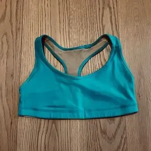LuluLemon excercise tank, gently used good condition, no stains or tears, beautiful deep aqua blue, no padding inserts, no size on item, very small, thinking is an XS? See measurements. If anyone knows the size based m the measurements ent please let me knoww. Thanks