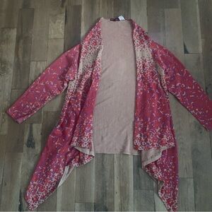 Jessica London Chic Red and Beige Patterned Shawl Cardigan Sweater Size 18-20
