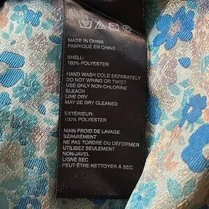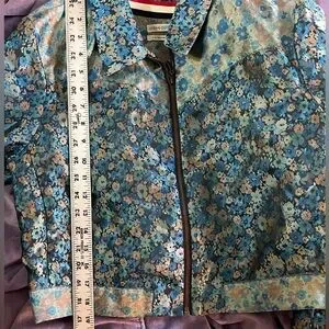 Blue floral jacket in a beautiful sheen by Urban Outfitters. With zipper front, no pockets.