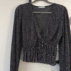 Zara | EUC Polka Dot Long Sleeve Chiffon Blouse in Black/White Size Medium