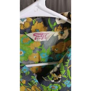 Step out in style with this stunning vintage floral shirt by Fritz. Crafted from soft cotton, this shirt features a vibrant mix of flowers in lovely shades of blue, green, yellow, and brown, perfect for adding a splash of color to any wardrobe. Ideal for casual outings or dressed-up occasions, it comes with a classic collared neckline and long sleeves that enhance its timeless appeal.