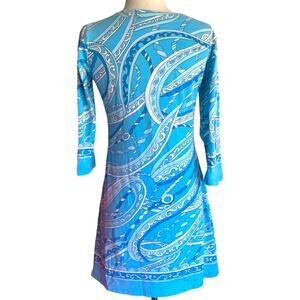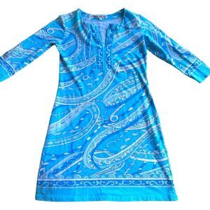 Barbara Gerwit Baby Blue Paisley Print 3/4 Sleeve Slit Neck Summer Mini Dress