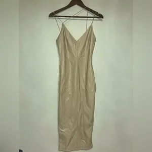 Fashion Nova- Make It Sexy Faux Leather Midi Dress Nude