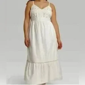 Ava & Vic Ivory Cream Tan embroidered Thin Strap Maxi Dress Size 2X