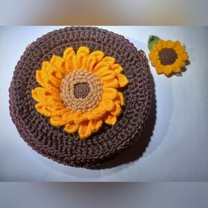 Excellent Used Condition Crochet Sunflower Crossbody. It comes with a matching crochet sunflower key chain. The hard wear has some minor scratches from use as is. No returns. Please look at pictures for colors and measurements. No accidental bids, refunds, or cancellations. Please bid responsibly.