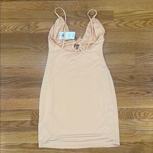 Stylish mini dress. Features a front tie detail. Perfect for a night out.