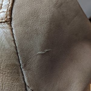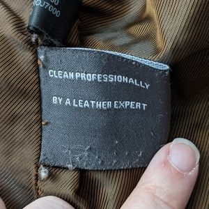 Description: Beautiful supple cognac leather jacket with epaulet details and multiple functioning pockets. One small tear on the right rear shoulder.
