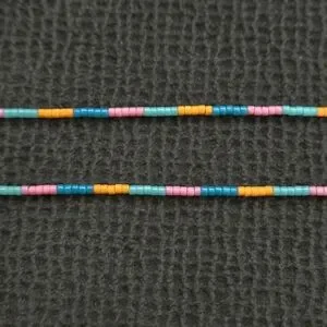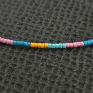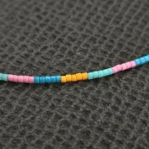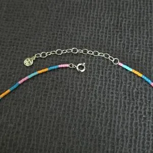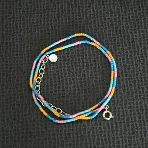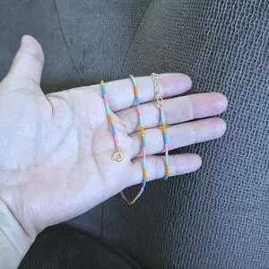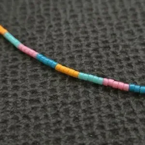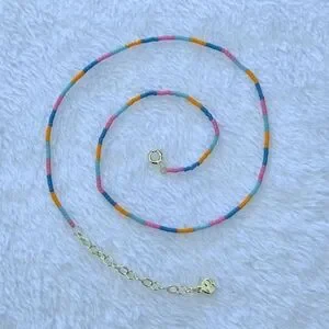 Colorful necklace with alternating glass🪟 beads in pink🩷, blue💙, orange🧡 and teal green💚