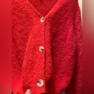 Fuzzy orange cropped cardigan by Wind&Willow Size S, acrylic and polyester