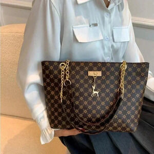 ⚠️Clearance Brown Patterned Large Tote Shoulder Bag Gold Pendant