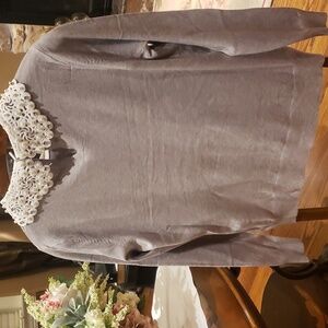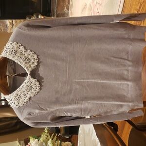 Elegant gray sweater with a delicate lace collar. Perfect for a chic and sophisticated look.
