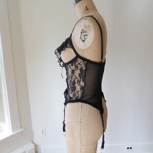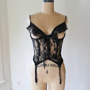 Vintage Corset Basque Black Lace open bust 80s vintage lingerie by Escante M