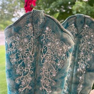 CORRAL Turquoise Embroidered Rhinestone Western Cowgirl Boots