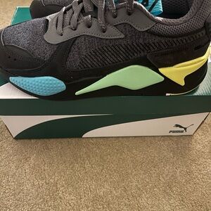 PUMA Mens Rs-X Highlighter Lace Up Sneakers Shoes Casual - Black, Grey, Blue, Green, Yellow. Size 9.5 (mens). Only worn once; in great condition. Will ship with original shoe box.