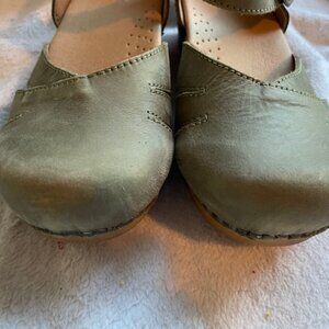 Sanita Margrethe Sandals Leather size 36 6 Khaki Clogs Wood Heel Green Beige