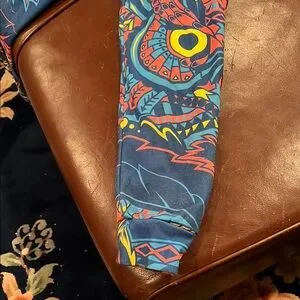 Vibrant hoodie with a striking owl design. Features bold colors and intricate patterns. Perfect for a unique style statement. Polyester outer shell…flannel inside.