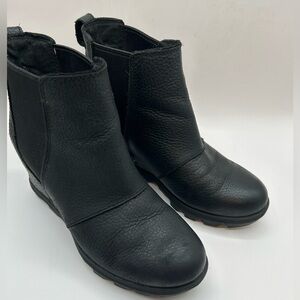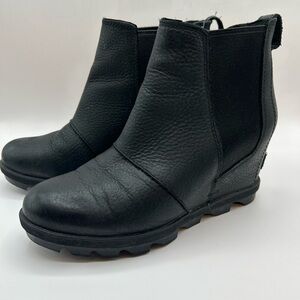 Sorel Black Leather Joan of Arctic Waterproof Chelsea Wedge II Boots Bootie 7