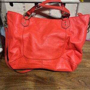 Stunning Vintage Coach Campbell Belle satchel in bright coral leather. Perfect for summer!