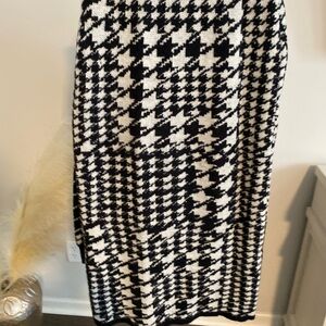 Black-and-white houndstooth two-piece skirt set. Skirt has a black band at top 30 inches L; top is crop style 19 inches pit to put and 38 inch bust 15 inches length.