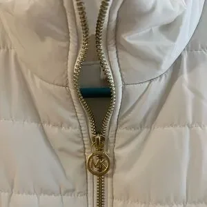Super cute Michael Kors White Puffer Vest! Worn a few times and freshly laundered. Zipper works great. Has a pocket on each side. Super cute and flattering vest, just too small for me now! From my smoke free home.