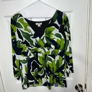 NWOT❗️CATO Blouse Women Green Floral V-Neck