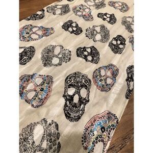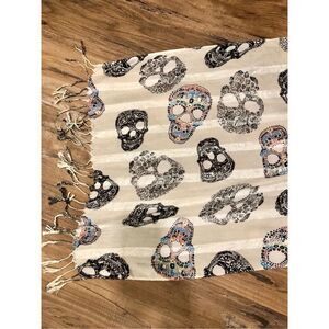 Pier 1 Sugar Skull Halloween Autumn Lightweight Tassle Scarf with Sparkle Glitte