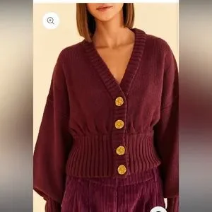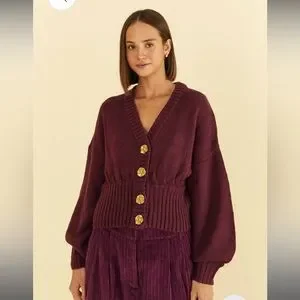 Farm Rio Burgundy Bubble Knit Cardigan Size L NWT