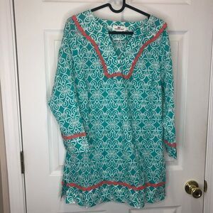 Vineyard Vines turquoise blue and white floral scroll design long sleeve tunic top dress with coral detail. Pit to pit 19in, sleeve 21in, length 30in, size small. Lightweight and in great condition ⭐️